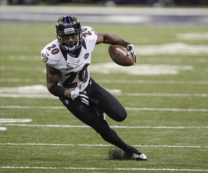 Feb 3, 2013; New Orleans, LA, USA; Baltimore Ravens free safety Ed Reed (20) turns upfield after his interception in the second quarter in Super Bowl XLVII at the Mercedes-Benz Superdome. Photo Courtesy By Jack Gruber-USA TODAY Sports.